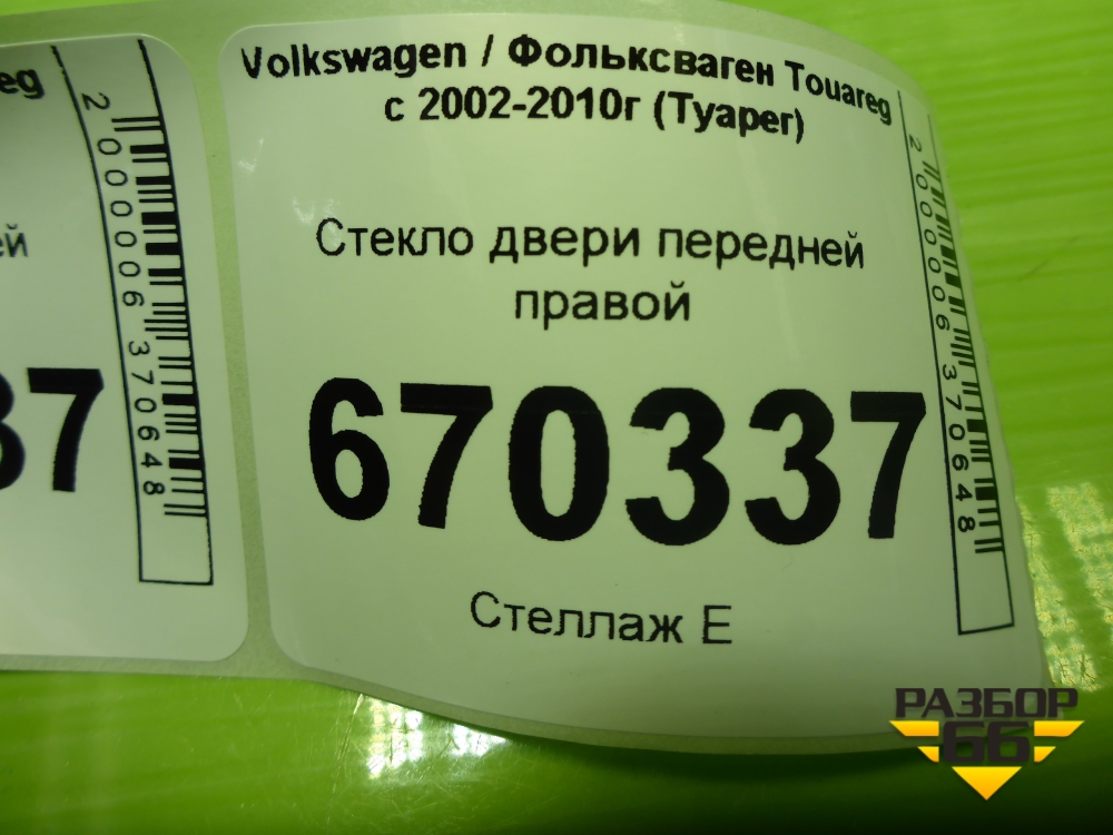 Стекло двери передней правой для Volkswagen Touareg c 2002-2010г (Туарег) в Екатеринбурге