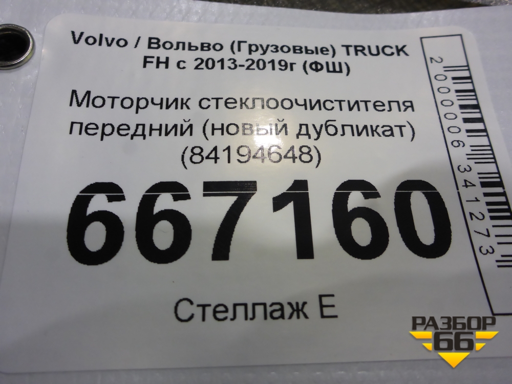 Моторчик стеклоочистителя передний (новый дубликат) (84194648) для Volvo TRUCK FH с 2013-2019г (ФШ) в Екатеринбурге