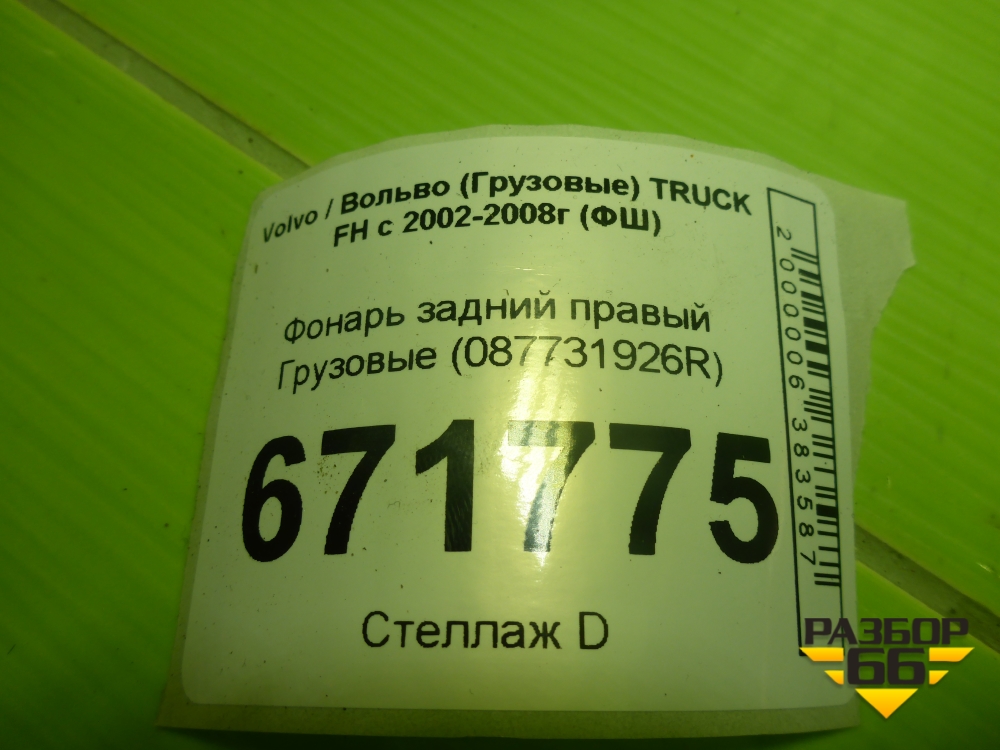 Фонарь задний правый (087731926R) для Volvo TRUCK FH с 2002-2008г (ФШ) в Екатеринбурге