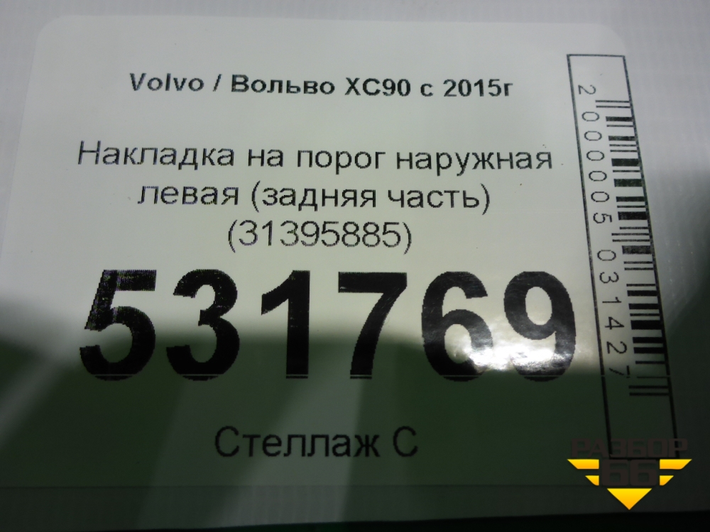 Накладка на порог наружная левая (задняя часть) (31395885) для Volvo XC90 с 2015г (ХС90) в Екатеринбурге
