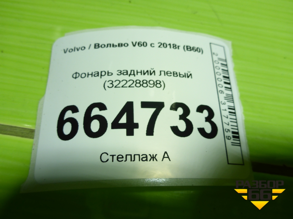 Фонарь задний левый (32228898) для Volvo V60 с 2018г (В60) в Екатеринбурге