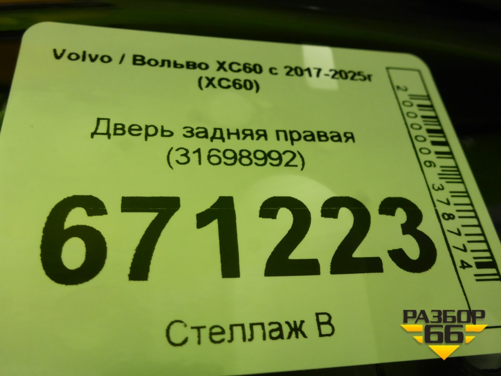 Дверь задняя правая (31698992) для Volvo XC60 с 2017-2025г (ХС60) в Екатеринбурге