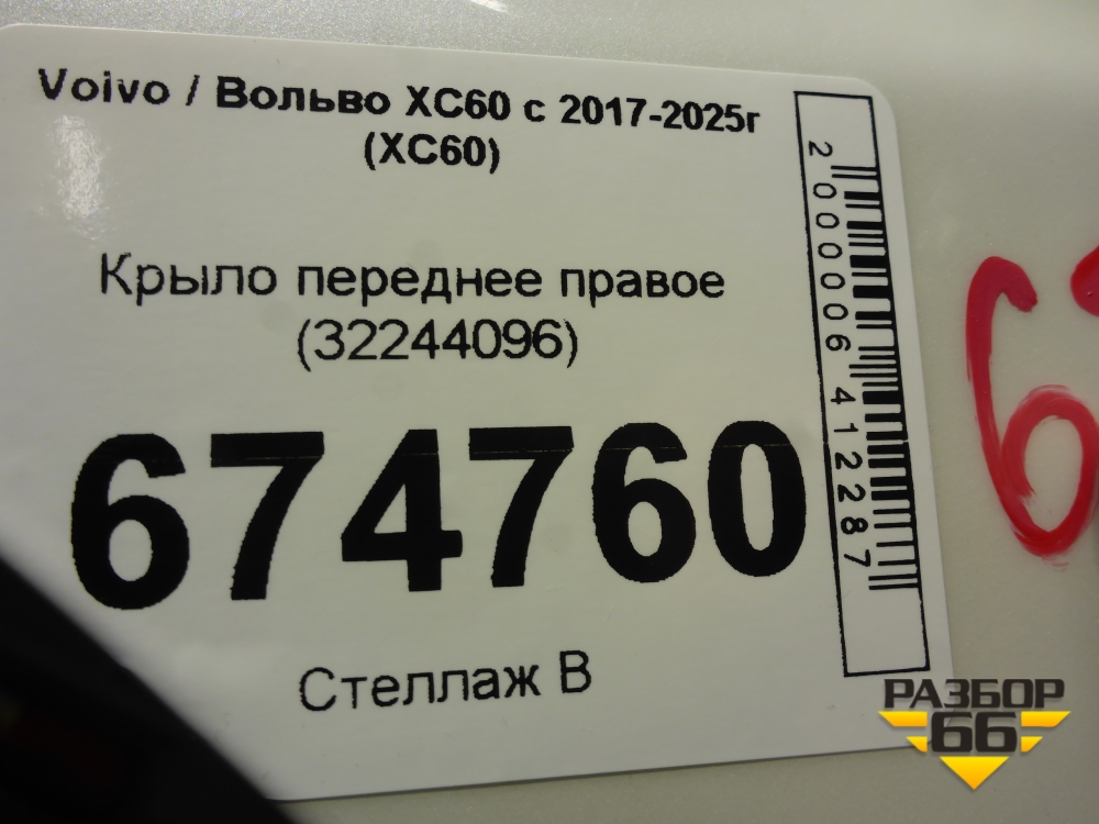 Крыло переднее правое (32244096) для Volvo XC60 с 2017-2025г (ХС60) в Екатеринбурге