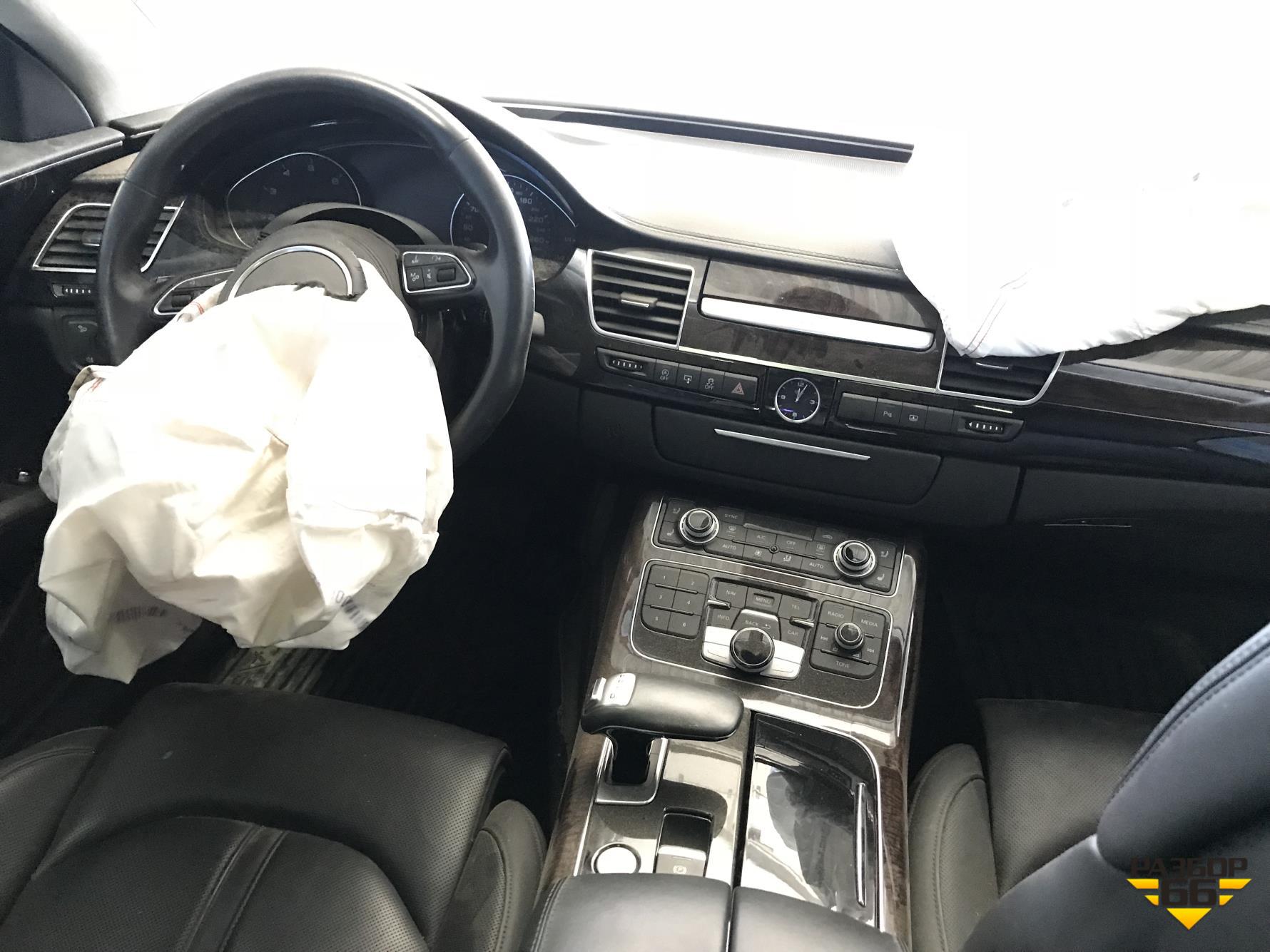 Представляем вам авторазбор Ауди А8 2013 года выпуска. При аварии у машины пострадала только передняя часть, и то нельзя сказать, что критически. Остальные же элементы у нее остались нетронутыми.